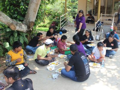 As a part of the IIMPG event organized by ATTD-India, a group of 40 of Intel staff reached Gunina Farms, Begehalli to meet the special kids from Snehadhara Foundation – some visual-pattern-logical thinkers and some really smart geeky kids and spent a day working as volunteers and learning from their perspective. A variety of delightful and happy situations ensued.