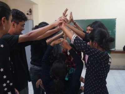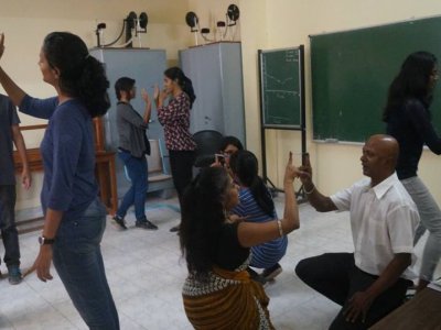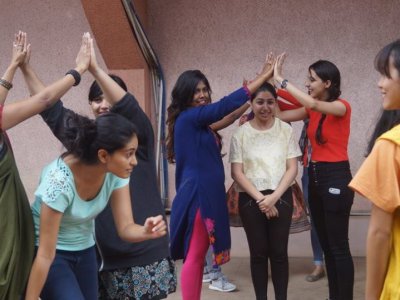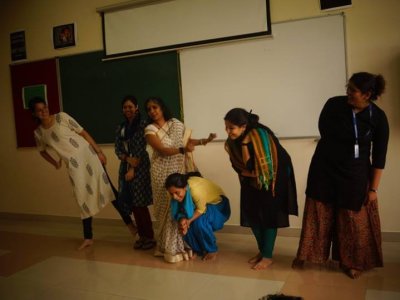 Artistic tools such as Theatre and Drama, Stories-sharing and creating, Puppetry and role-plays, Directive and Non Directive Play, Voice and Rhythm, Dance and Movement and games helped enrich the play space and enabled the process of learning. Through the course, the students were taken through the practice of various creative techniques of play and how play can be facilitated using these. During one session a demonstrative space focussing on the key concept of interdependence and interconnectedness with the goal of mindfulness was created with the group of students. In another session the students were exposed to alphabet sign language to experience verbal and non verbal communication.