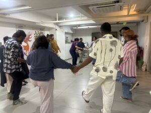 In a presentation at Academyati, we shared our Arts Practices for Inclusion model by getting the group to dance and sing together.